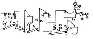15. 16. After the elevator stove silo 17. 19. 18. Heaters the damper 20. The air flow regulator 21. The suction fan
